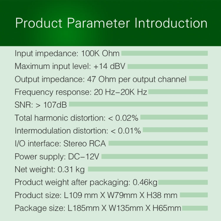 3. This product can increase the sound quality of the control signal and reduce the bottom noise. With a large dynamic range, it will not produce a burst. The output volume is controlled by sensitivity adjustment knob, and DC 12V power supply is adopted to ensure full thrust.
