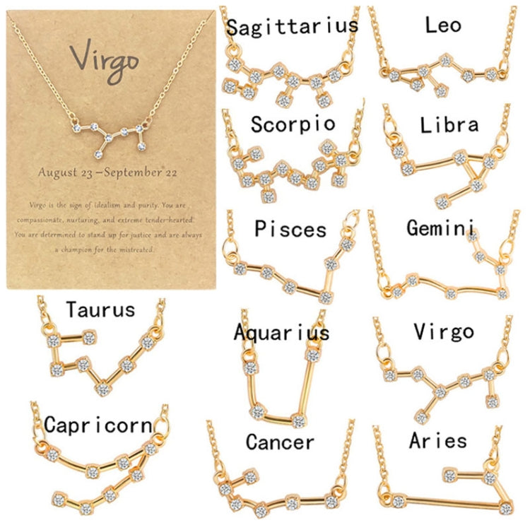 12 Zodiac Signs With Diamonds Necklace Card Rhinestones Collarbone Chain Pendant, Scorpio Golden, Sagittarius Golden, Capricorn Golden, Taurus Golden, Pisces Golden, Leo Golden, Libra Golden, Cancer Golden, Aquarius Golden, Virgo Golden, Aries Golden ...