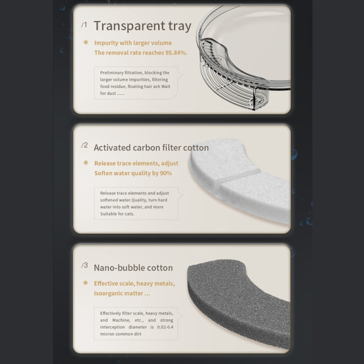 1. 360-degree active oxygen circulation waterway, the flowing water is rich in oxygen ions, which constantly stimulates the cats interest and attention, and helps to increase the amount of drinking water