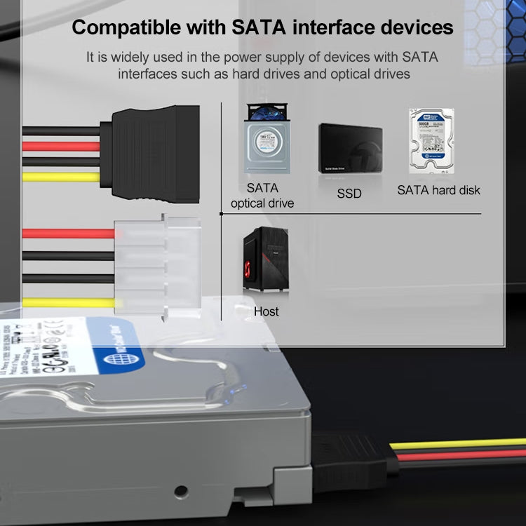 4 Pin IDE to Serial ATA SATA Power Cable Adapter (15cm), Material: Al+Mg