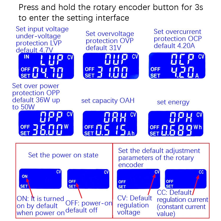 6. Long press the rotary encoder button to enter the setting interface, which is easy to operate