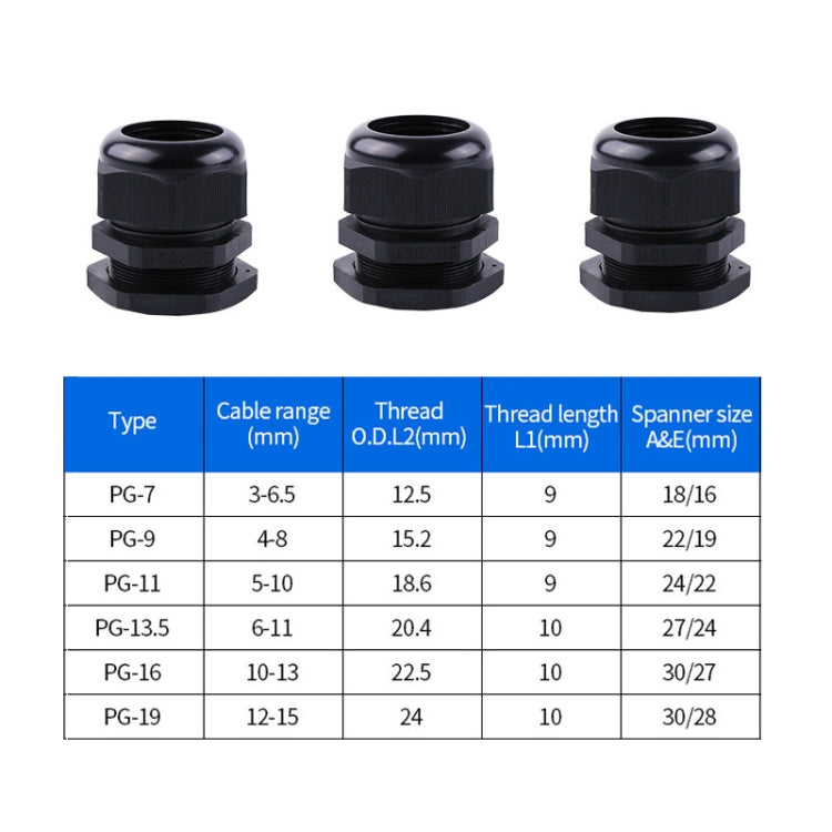 7. Packing list: PG7x20, PG9x10, PG11x6, PG13.5x5, PG16x4, PG19x5