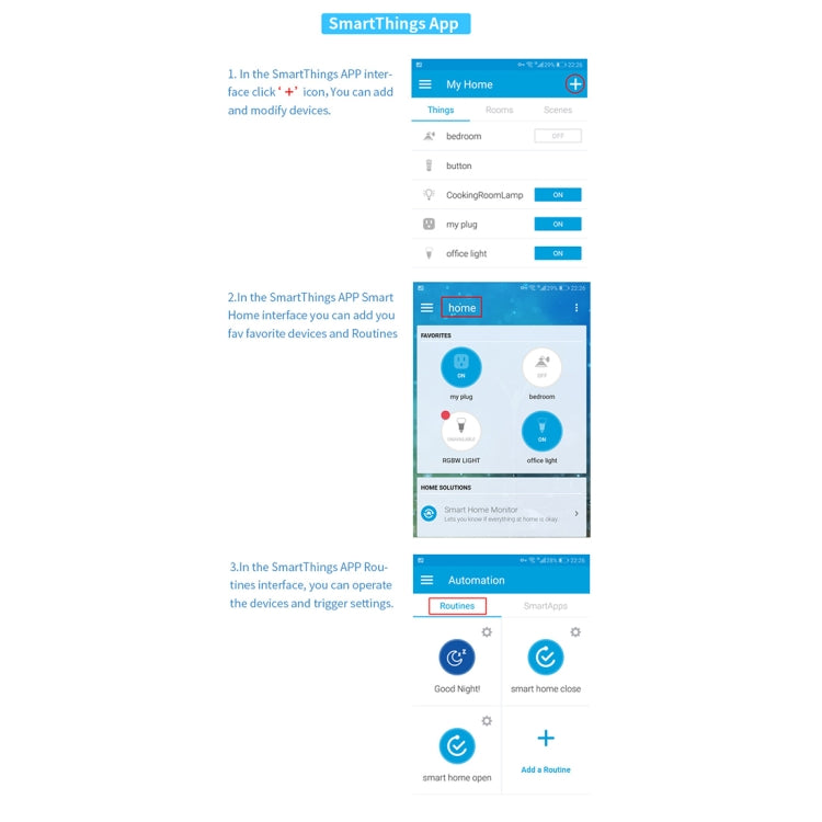 3.Support 3 kinds of Echo devices, voice pairing, direct support for Alexa APP and Samsung SmartThings APP control, easy to use.