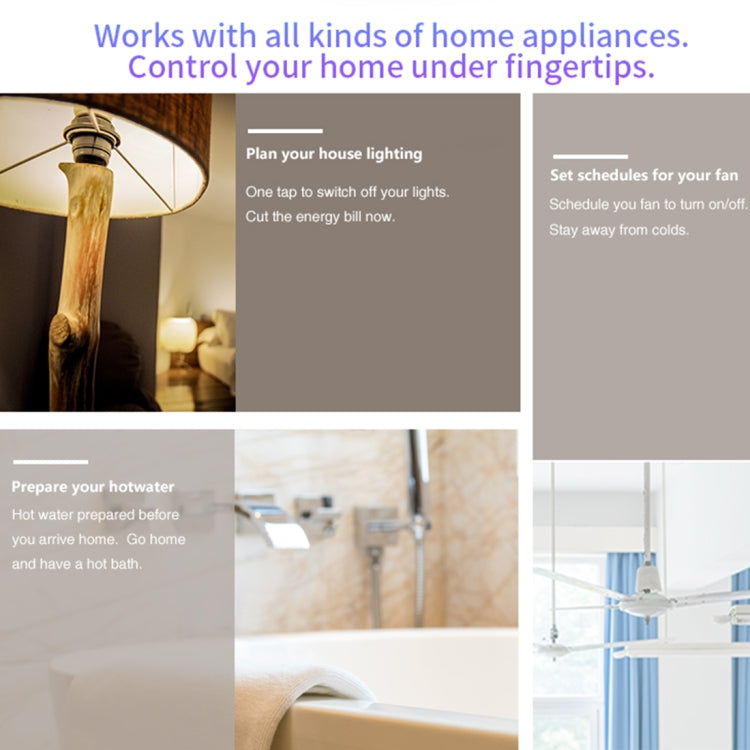 2.Intelligent switch controller, small size, save space, can be connected to the circuit to control the power switch, 98 percent of home appliances and lamps are common.