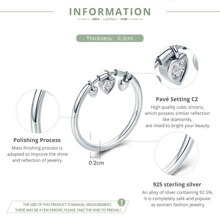 925 Sterling Silver Heart Diamond Ring Women Wedding Engagement Jewelry