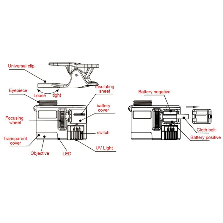 5. Features: adjustable focal length, self-contained light source, 60 times magnification, with a purple light