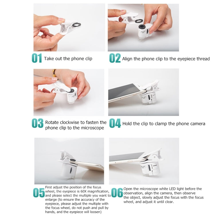 9595W1 60 Times Magnifying Glass Mobile Phone HD Microscope with Led Light