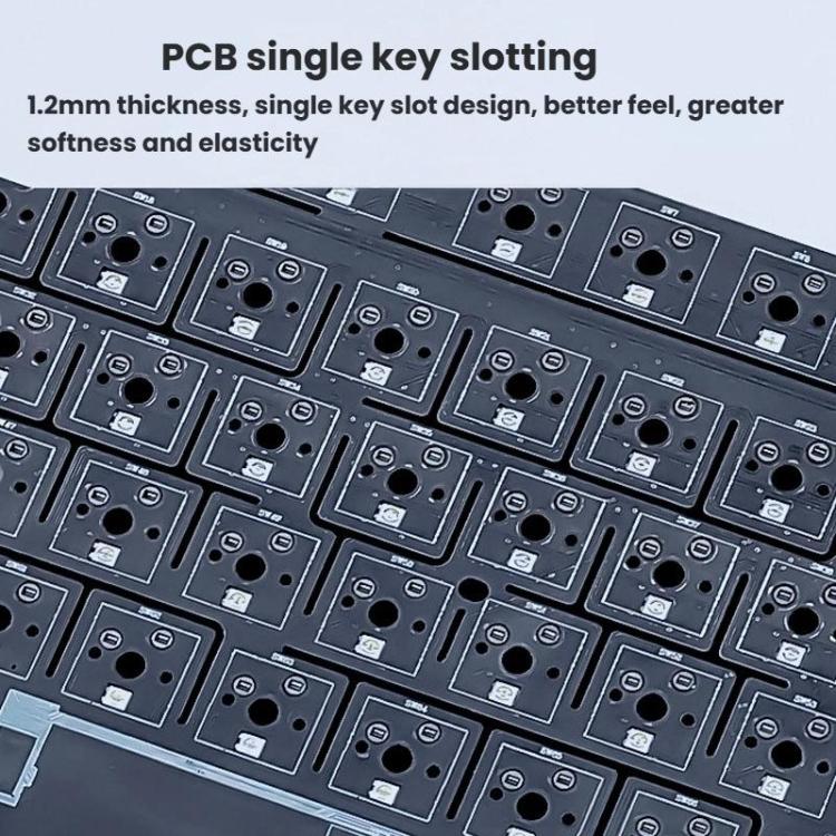 2. PCB single-key slotted, 1.2mm thickness, better feel, a greater degree of soft play