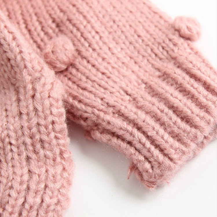Autumn and Winter Female Baby Hair Ball Decoration Knit Cardigan Coat