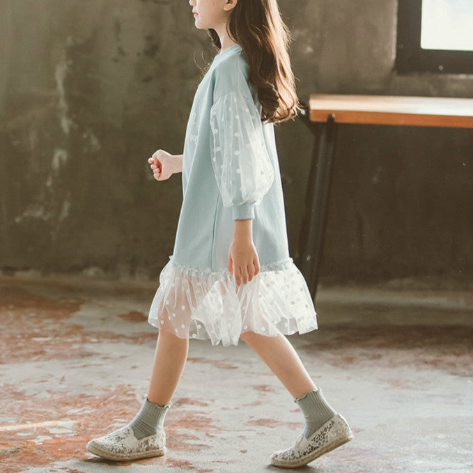 Autumn Girls Fashion Letter Pattern Long Sleeve Lace Stitching Dress