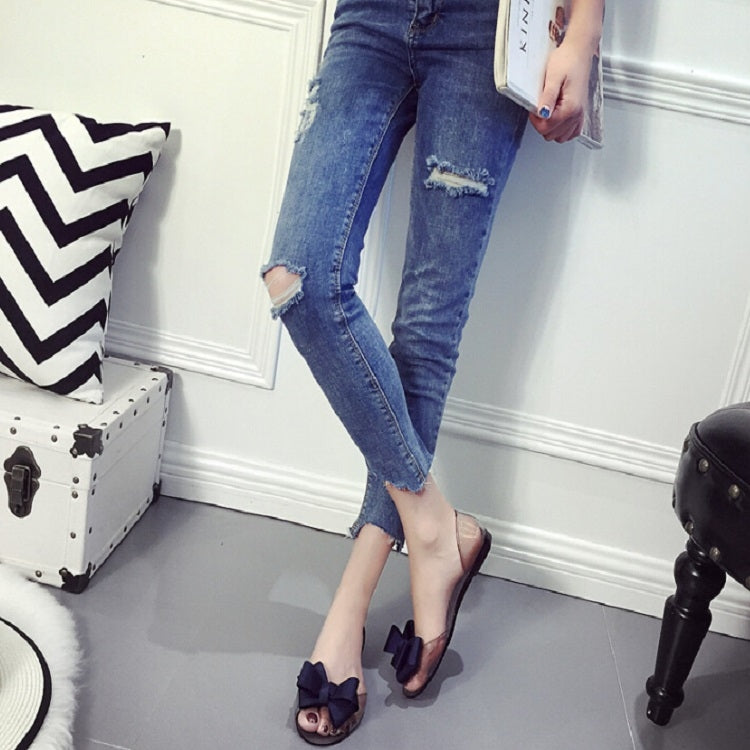 Beach Bow Plastic Transparent Flat Shoes Jelly Fish Mouth Shoes