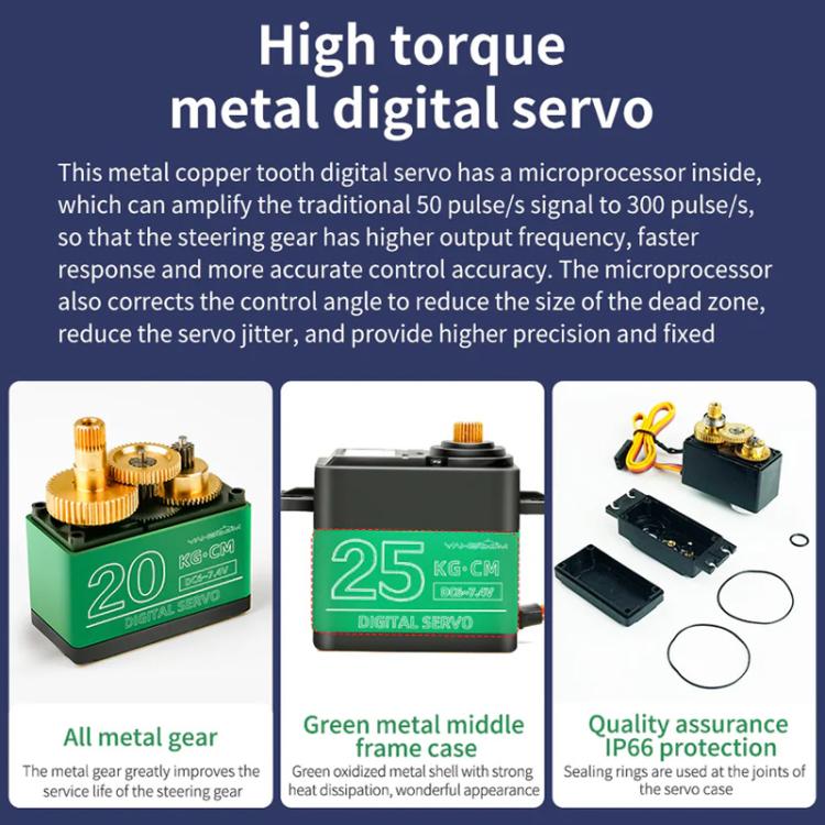 3. Made of all-aluminum alloy materials: Anodized aluminum alloy, 2mm thick, with a CNC aluminum alloy servo plate, precise, sturdy and durable.