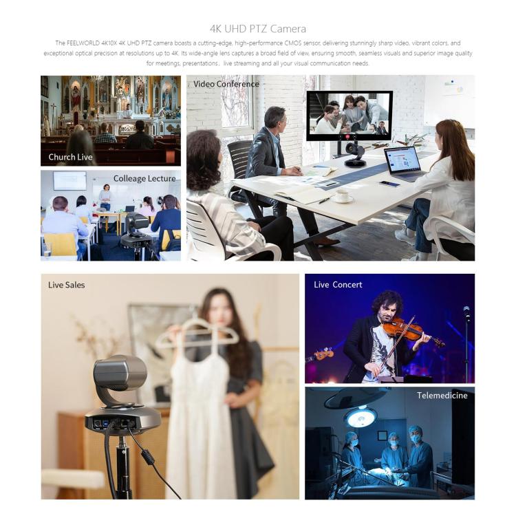 FEELWORLD 4K10X 4K PTZ Camera 10X Optical Zoom AI Tracking HDMI-compatible USB IP Remote Control, UK Plug, US Plug, EU Plug, AU Plug