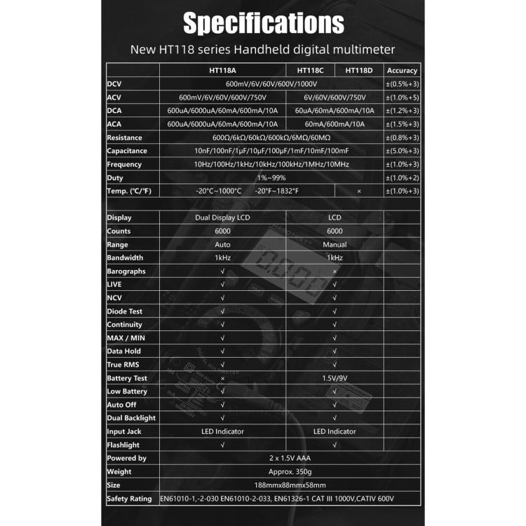 HABOTEST HT118D Portable High-precision Manual Digital Multimeter