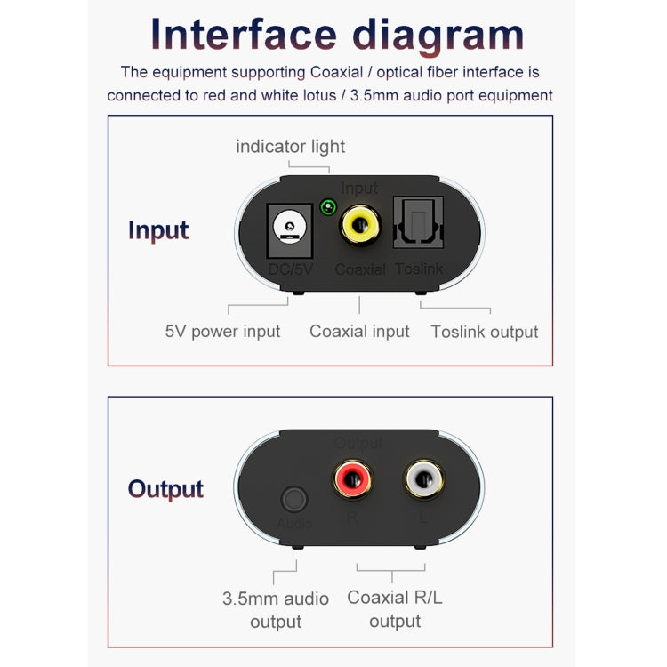 1. This digital-to-analog audio converter can be used for home or professional audio switching. It can convert coaxial cable or Toslink digital audio signals into analog audio. At the same time, it can be connected to peripherals like amplifiers through standard RCA-style jacks