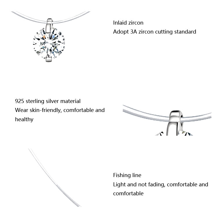 Invisible Fish Line Necklace Zircon Pendant S925 Sterling Silver Necklace