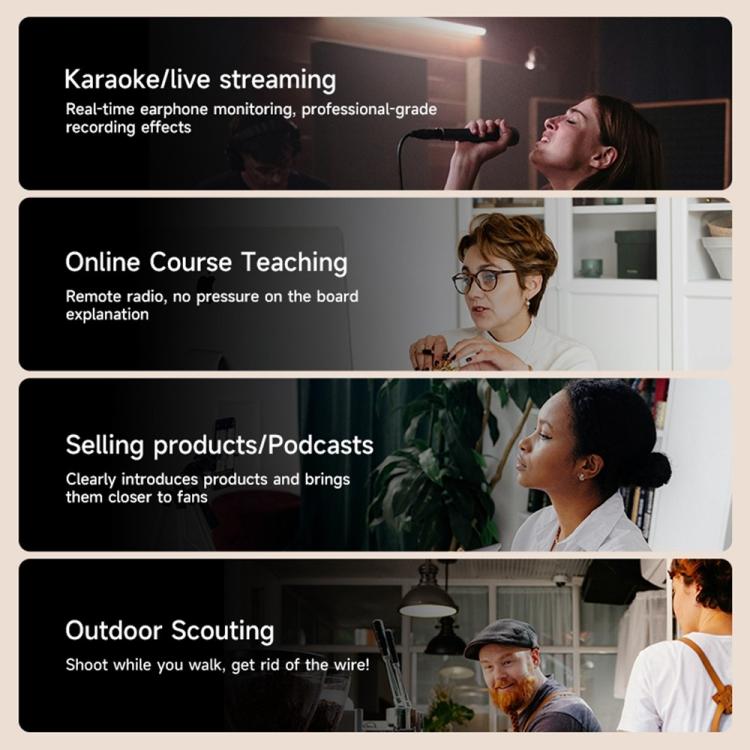 1. Professional-Grade Recording:Smart wireless lapel microphone delivers studio-quality audio output for live streaming and recording.