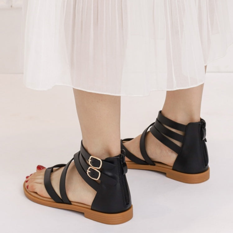Ladies Summer Strappy Cross Sandals Roman Style Low-Heeled Retro Shoes