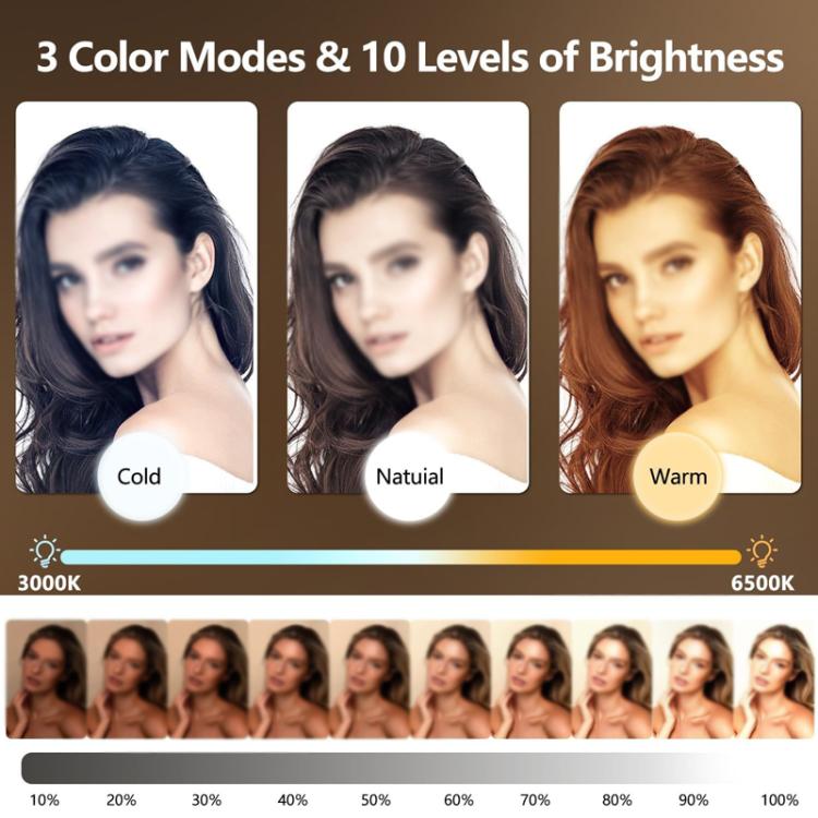 3. 3 color modes, 10 levels of brightness, multi-angle adjustment, multi-directional fill light, to meet a variety of needs