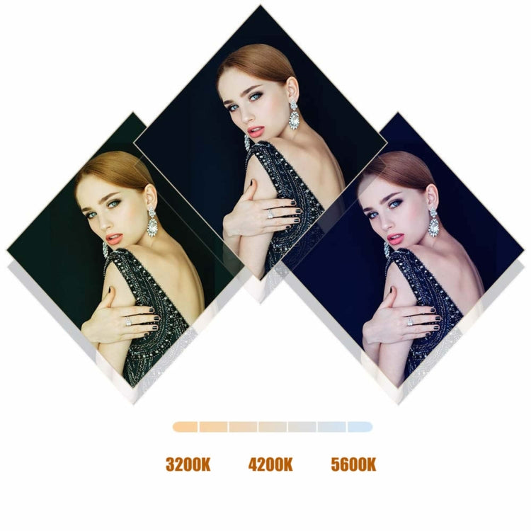 1. Cold and warm lighting double knob: two-color setting, free to adjust the color temperature 3200K-5600K without color filter.