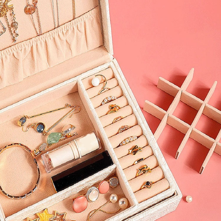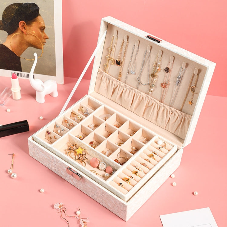 Multi-Layer Flip Cover With Lock Jewelry Box Solid Color Jewelry Desktop Storage Box, White, Red
