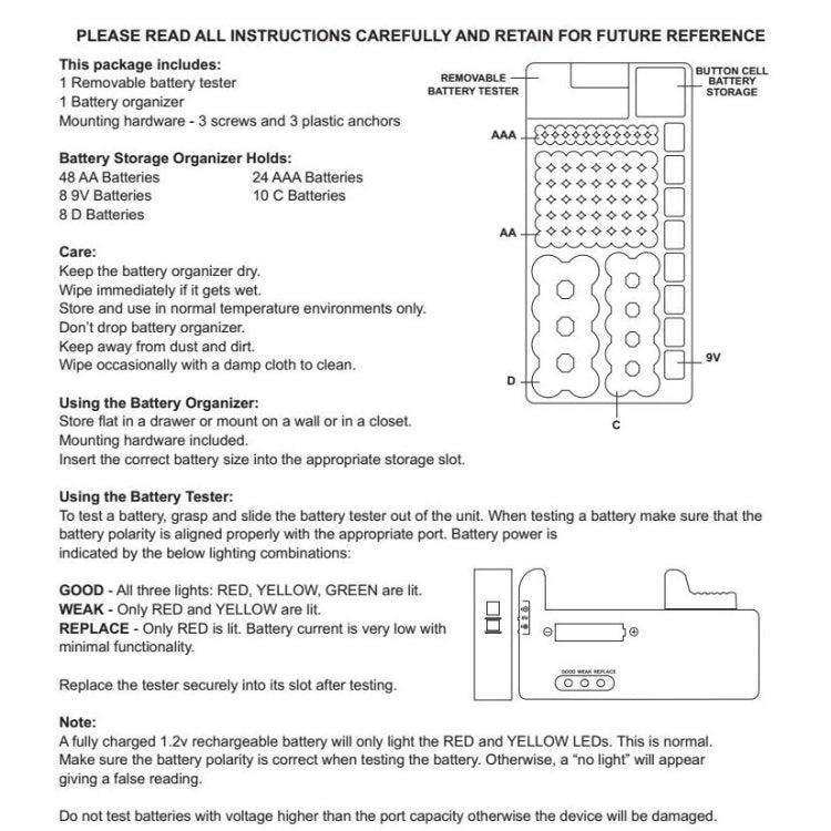 5. Capacity: can hold 8 large batteries, 10 batteries on the second, 9V 8batteries, AA 48batteries, AAA 24batteries, and some small batteries can also be placed