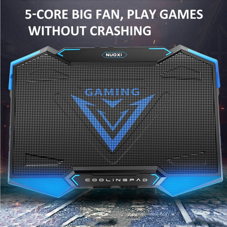 NUOXI 5 Fans Laptop Radiator Bracket Height Adjustable with Dual USB Ports, 5 Fans Black and Red, 5 Fans Black and Blue