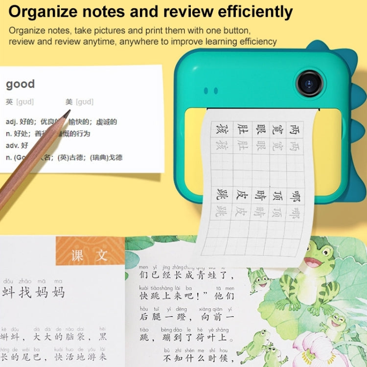 P1 No Card Children Instant Camera 1200W Front And Rear Dual-Lens Mini Print Photographic Digital Camera Toy(Green Dinosaur), Green Dinosaur No Card, Pink Cat No Card, Green Dinosaur 16GB, Pink Cat 16GB, Green Dinosaur 32GB, Pink Cat 32GB