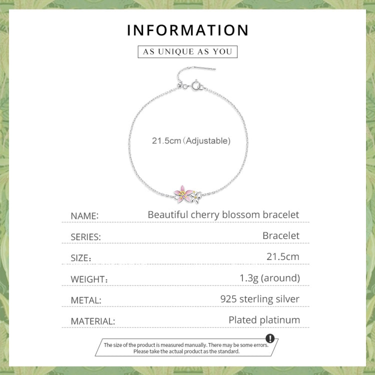 S925 Sterling Silver Cherry Blossom Bracelet Women Jewelry