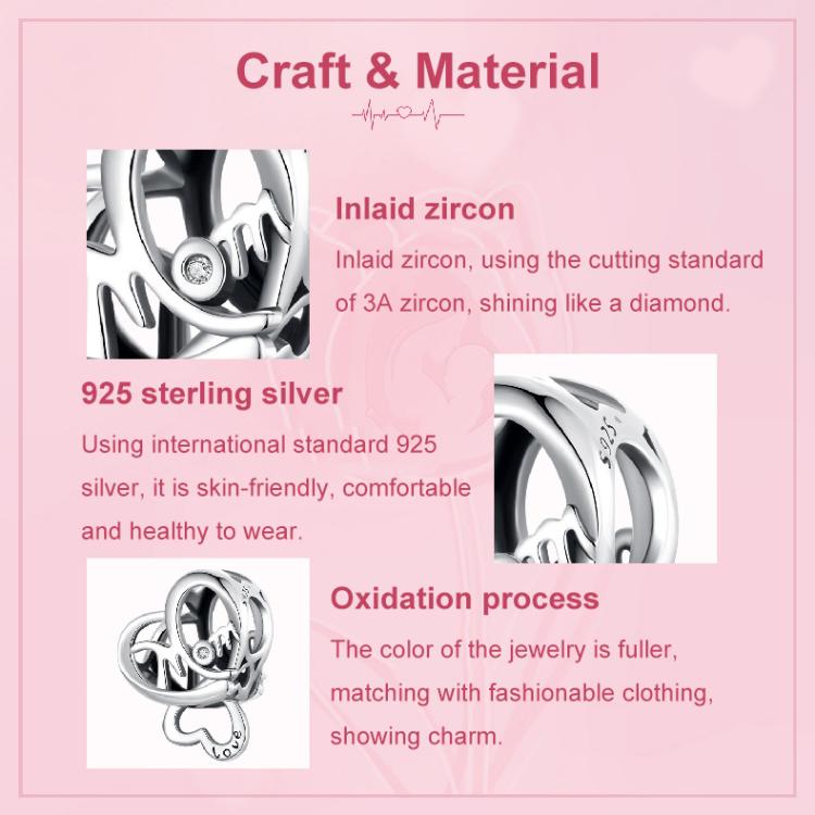 S925 Sterling Silver Mother Day Heart Shape Bracelet Beads