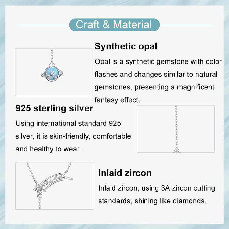 S925 Sterling Silver Nano Opal Cosmic Planet Meteor Necklace