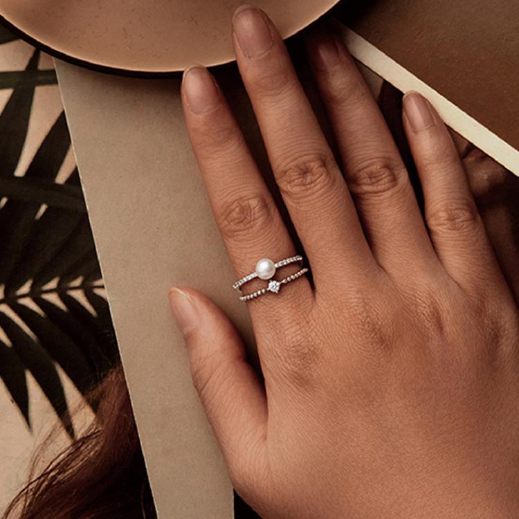 S925 Sterling Silver Natural Freshwater Pearl Double-layer Ring Elegant Temperament Ring, 6, 7, 8