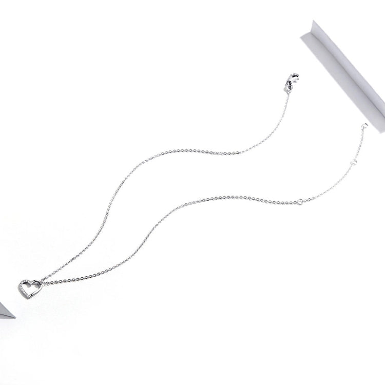 SCN347-B Sterling Silver S925 Zircon Simple Fashion Hollow Heart Shape Necklace