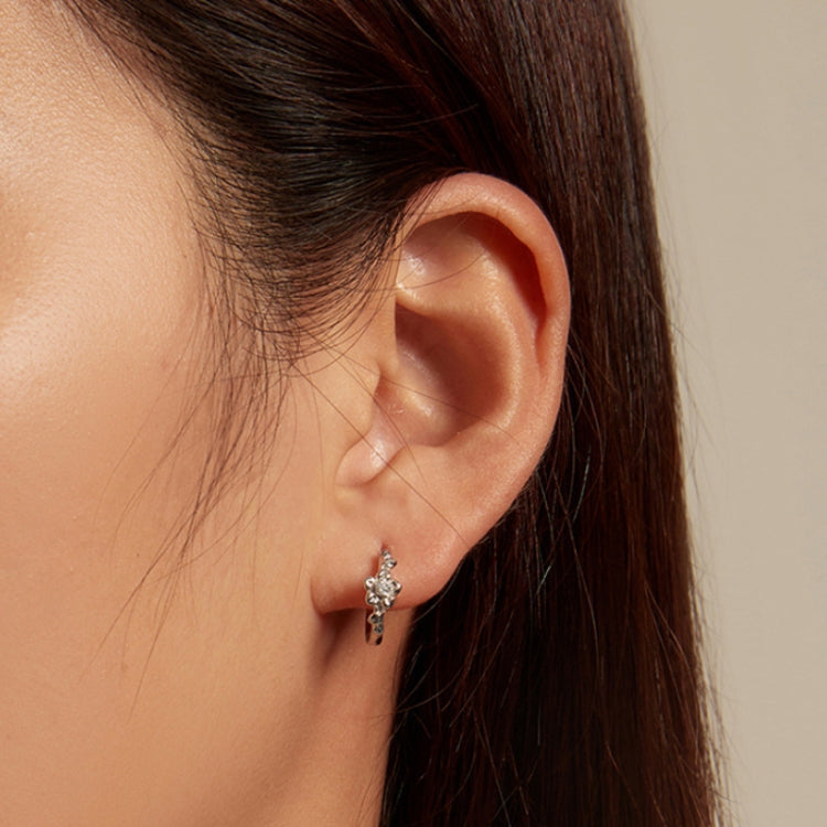Sterling Silver S925 Small Flower Vine Plated Platinum Zircon Earrings