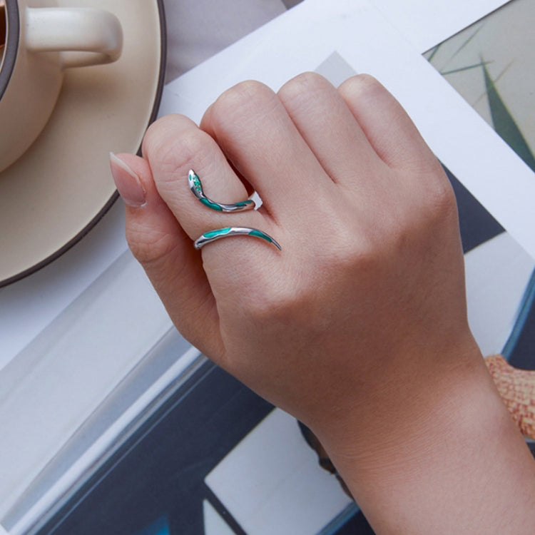 Sterling Silver S925 White Gold Plated Oil Drop Zirconia Green Snake Ring, BSR328