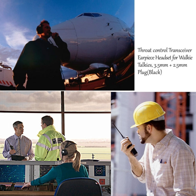 Throat control Transceiver Earpiece Headset for Walkie Talkies, 3.5mm + 2.5mm Plug
