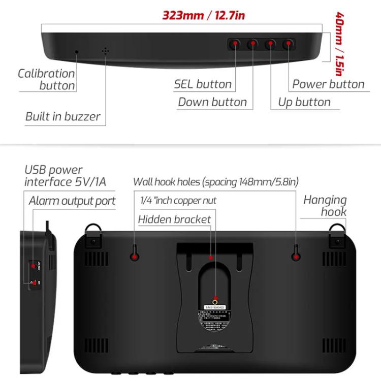 TRSI TA654B Large Screen Wall-mounted Noise Meter Decibel Detector Device, TA654B