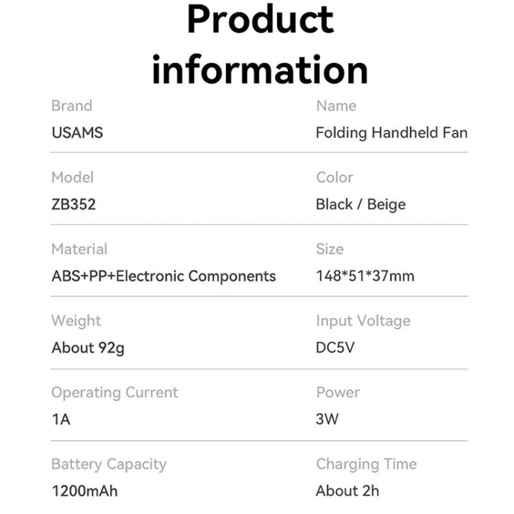 USAMS ZB352 Digital Display Folding Handheld Mini Fan