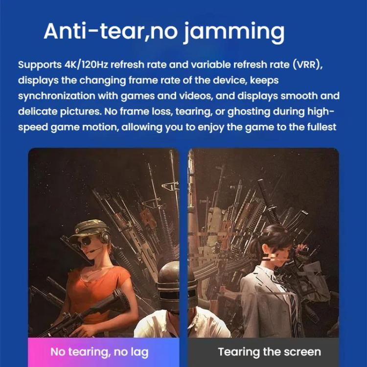 7. Supports 4K/120Hz refresh rate and variable refresh rate (VRR), the changing frame rate of the display device is synchronized with the game and video, the picture is smooth and delicate, and there is no frame loss, tearing, or ghosting in high-speed game movement