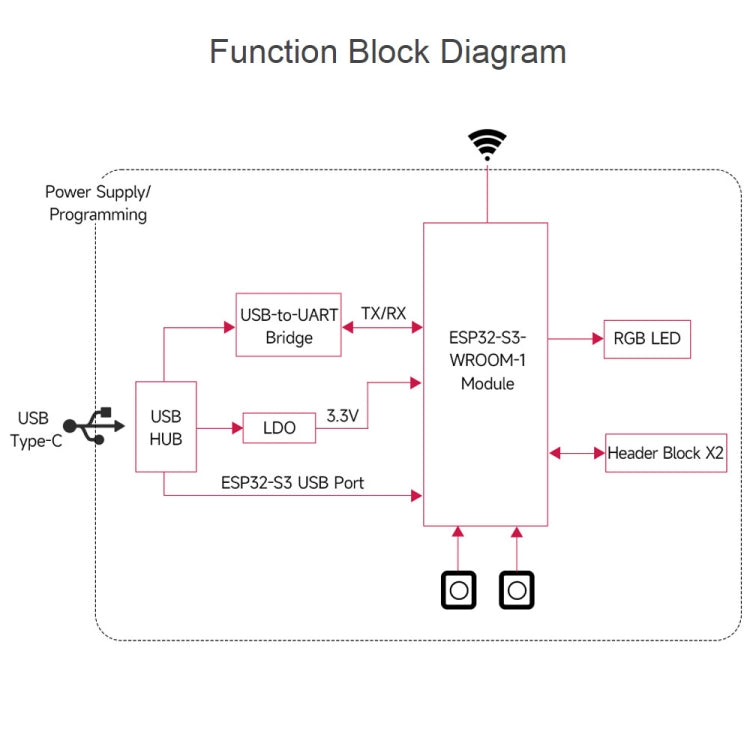 3. Using ESP32-S3-WROOM-1-N8R8 module, equipped with Xtensa 32-bit LX7 dual-core processor, the main frequency is up to 240MHz