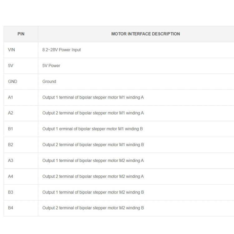 2. Motor drive voltage: 8.2V~28V