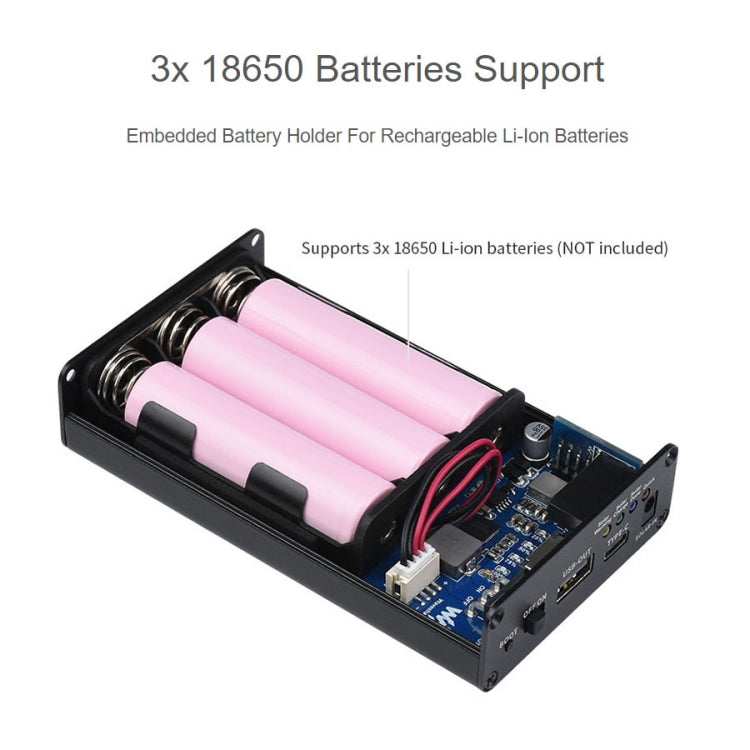 The Solar Power Manager (C) is compatible with general 6V~24V solar panels. It can recharge the 18650 rechargeable Li-ion batteries through solar panel or USB TYPE-C connection, and provides 5V / 3A regulated output (with multi protocols support including PD/QC/FCP/PE/SFCP).