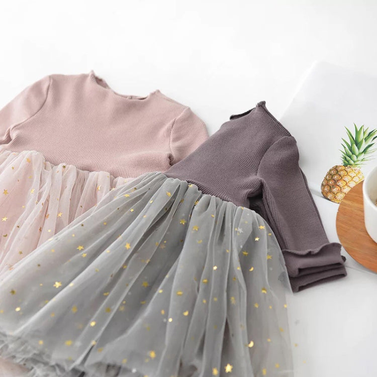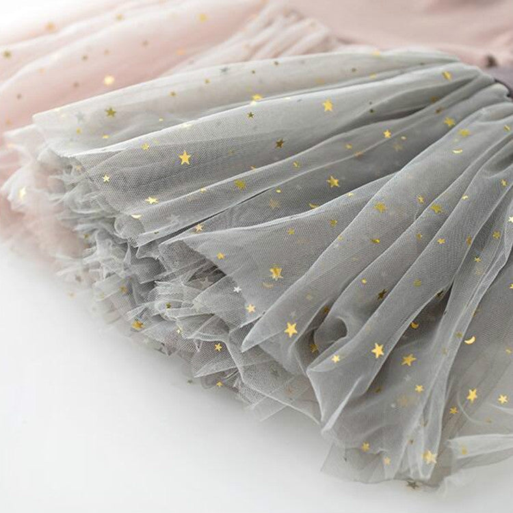 Winter Girls Patchwork Five-pointed Star Mesh Long-sleeved Dress