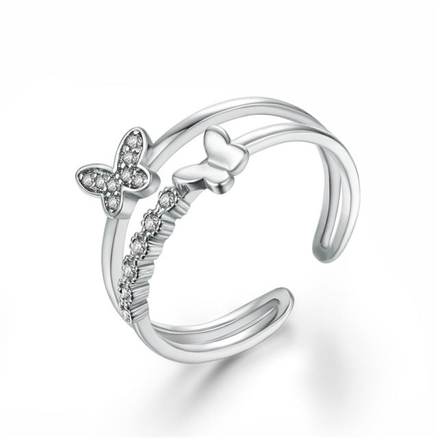Women Fashion Cute Butterfly Shape Diamond Opening Ring